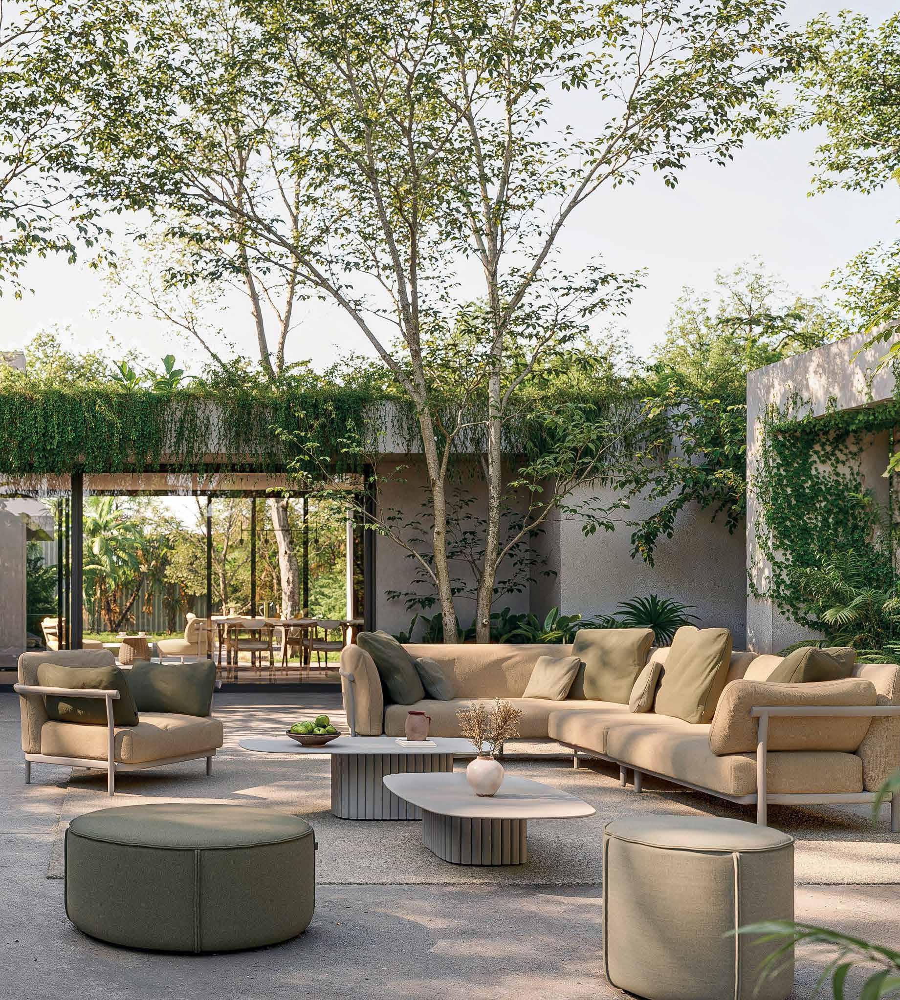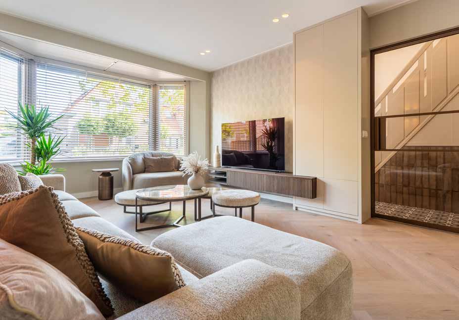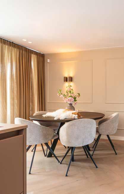 meubels met zachte, vloeiende lijnen die de originele ramen weerspiegelen, en materialen die op een prachtige manier ouder worden. Hier voelt luxe nooit kil aan; het is intiem, persoonlijk en comfortabel.