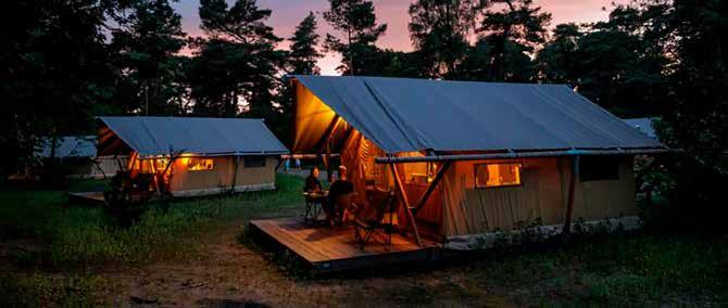 Een heel andere sfeer vind je bij Huttopia De Veluwe, waar het bos de toon zet. Hier draait het om buiten zijn: fietsen over zandpaden, lange wandelingen maken of simpelweg de tijd nemen om niets te doen. In de gezamenlijke ontmoetingsruimte komen gasten aan het einde van de dag samen voor een drankje of een spelletje.