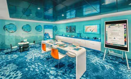 De vloot van het MSC Cruises is ontworpen als een drijvende wereld op zich, waar internationale gastronomie, entertainment van wereldklasse en hoogwaardige ontspanning samenkomen. Toch is het niet alleen de schaal die indruk maakt, maar vooral de filosofie achter het reizen: reizen als ervaring, als zintuiglijke ontdekking, als een moment van pure luxe dat begint zodra men aan boord stapt. Het vlaggenschip is zonder twijfel de MSC Euribia, een schip dat zowel technisch als esthetisch vooruitloopt op zijn tijd. De romp van het schip is een uniek kunstwerk, versierd met het #SaveTheSea kunstproject van kunstenaar Alex Flämig, dat toewijding aan oceaanbescherming verbeeldt. Het schip telt negentien dekken, meer dan 2.400 hutten en een capaciteit van ruim zesduizend passagiers, maar voelt nooit massaal aan door de slimme architectuur van - meer dan 35.000 m2! - openbare ruimte wat zorgt voor een gevoel van vrijheid en luchtigheid, alsof men flaneert door een kustplaats. De elegantie van het interieur wordt versterkt door moderne kunstwerken, zachte lichtlijnen