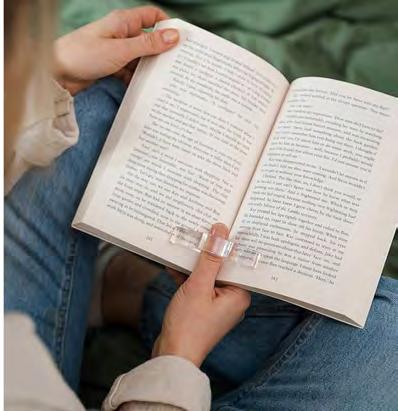 Read longer without handstrain! This clever gadget helps you hold your book in a neutral position, while keeping the pages open, with zero effort! Ideal for arthritis, travel, and reading in bed. Measures
