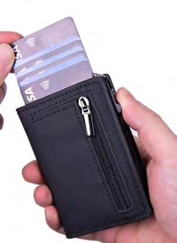 Ditch bulky wallets for one that shields cards from scammers with built-in RFID protection, while providing instant access – thanks to the clever pop-up slider. Crafted from lightweight stainless steel, it has a stylish black PU leather outer, and compartments for two extra cards, banknotes, and a zippered pocket for coins or a spare key. Measuring 10x7x2.2cm, its strong, sleek, and fits perfectly in your pocket.