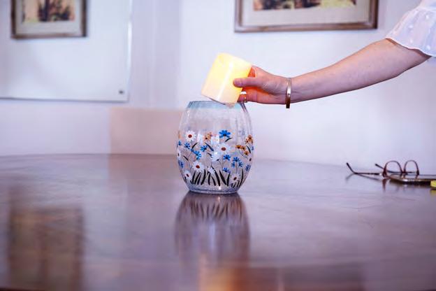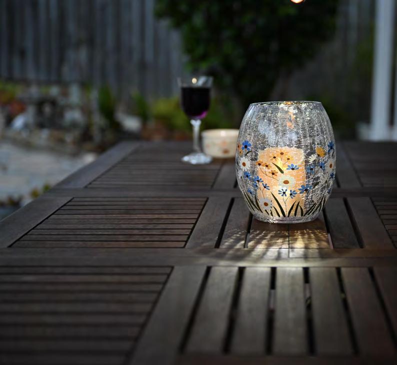 Bring timeless beauty to your table with this enchanting crackled glass lantern, delicately hand-painted with meadow wildflowers. By day, it's a charming ornament; by night, the warm flicker of its LED candle transforms it into a glowing centrepiece that radiates romance