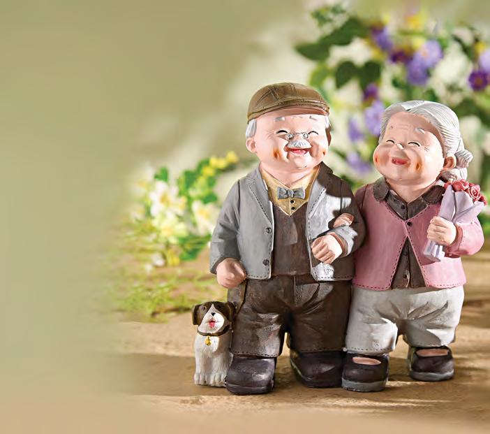 This delightful hand-painted couple radiates joy, devotion, and lifelong companionship. A playful tribute to goldenyear romance, it captures the quiet nods, shared laughs, and enduring love that deepen over time. Place them on your porch to greet family, or nestle them in your garden where their warmth can be felt by generations to come. A beautiful way to say “I love you” without words—perfect for anniversaries, milestones or just because. Measures 20x17x9cm.
