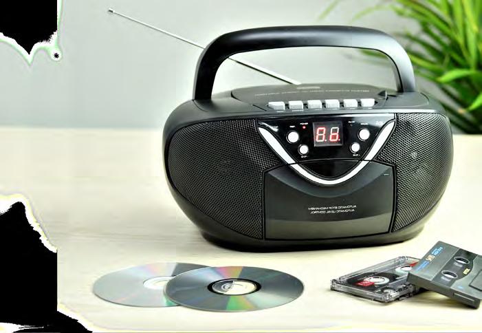 This boom-box look CD/cassette player will bring those fond memories back to you! When playing your favorite CD or cassette, the mono-to-stereo selector offers you a perfect listening experience through the 10-watt RMS speakers. If CD’s have become a relic of the past, just plug in any 3.5mm, AUX-compatible device and play your music. Main or battery (6 x C batteries not included) powered.