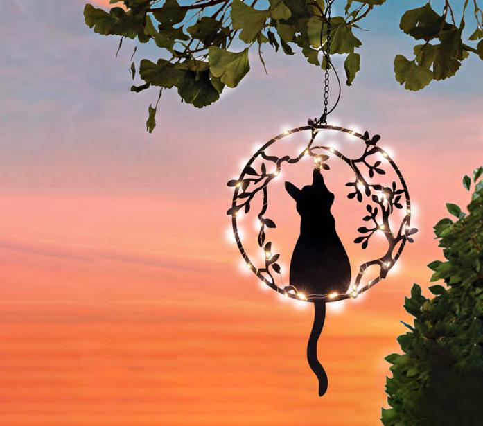 Crafted from etched metal petals and a crackled glass globe, it gleams in the sun by day and automatically glows warmly all night. No wires, no running costs, it measures 28x13cm.