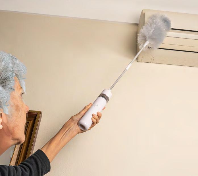 Glide this clever duster over fan blades to trap all dust and allergens in its thick microfibre fingers. It puts an end to airborne nasties spreading all over you, your furniture, and into the air you breathe. The telescopic handle that extends to 90cm for easy reach, and the washable head folds open for dusting any other surfaces.