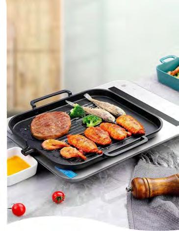 This quality non-stick aluminium pan heats fast and evenly thanks to its triple-layer base, while the raised grill lines sear in those restaurantstyle marks. As food releases oil, it flows to the spout, eliminating excess fats for cleaner, lighter cooking. Perfect for grilling steak, chicken, fish, satay, sausages, or vegetables, it’s compatible with gas, glass, ceramic and induction cooktops. At just 700g and 25x30cm, with twin handles, it’s compact yet generous enough for 2–4 servings.