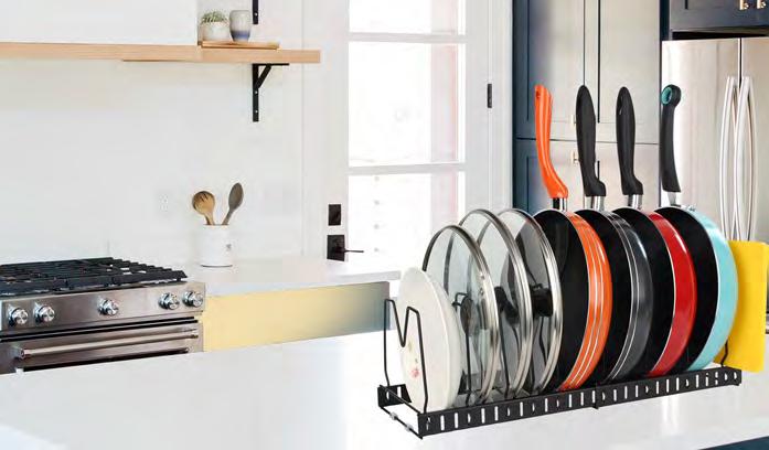 Stop rummaging through kitchen chaos! Pan Organiser neatly organises up to 9 pans, lids, pizza trays and baking trays upright, accessible, and safe from damage. No more scratched non-stick, no more stacked mess – just simple storage that saves time and space. Made from sturdy powdercoated steel, it expands from 30cm to 58cm to provide you with a completely customisable solution for your storage needs. Measures 18H x 18Wcm.