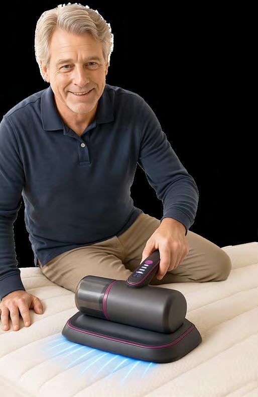 UV Bed Vac’s built-in UV-C light mimics the sterilising power of natural sunlight to neutralise dust mites, while the vacuum’s strong suction draws out dust and debris from deep within your mattress, pillows and living room upholstery. Both technologies work together to eliminate 99.9% of allergens that irritate sensitive airways, leaving your bedroom and home cleaner and healthier. Measures 28x24x12cm, 200cc cannister, powered by 1500mAh rechargeable battery (incl. USB-C charging cable).