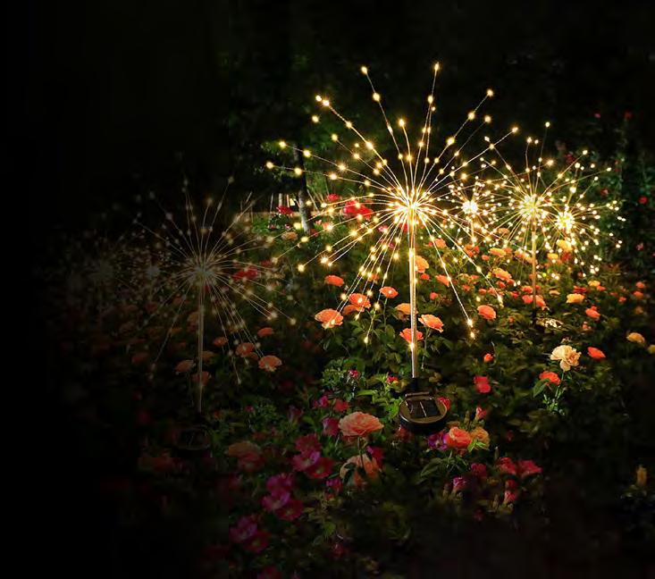 Enjoy the spectacle of a shimmering light show every night with these fibre optic fireworks lights. The bursts of colour-changing light will dazzle and delight as they appear suspended above your garden. Standing a magnificent 73cm tall, you can stake in flower beds, over the lawn, and along pathways and driveway to welcome you and visitors with the grandest entrance. Simply stake the weather-proof lights in a spot that gets 4-6hrs of direct sun, for 8-12hrs of continouous fireworks at night. Solar Fireworks Garden Lights Pk2 (Code: SLFWK) $29.95 2 PACK