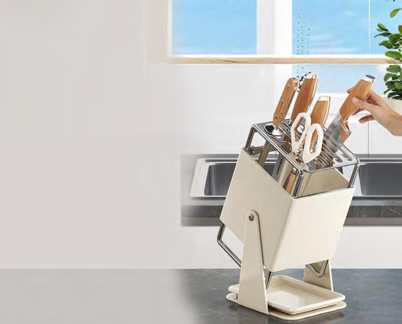 This sturdy block keeps all your knives within reach, while protecting their blades and freeing up kitchen drawer space. With slots for cleaver, santoku, two chef's knives, paring and bread knives, scissors and sharpening steel –the sleek hygienic stainless steel design won't warp or absorb moisture like wooden blocks. The 30° angle makes it easy to slide blades in and out, while the removeable drip tray allows you to store knifes immediately after washing and rinsing. Measures 24.5x16x12cm.