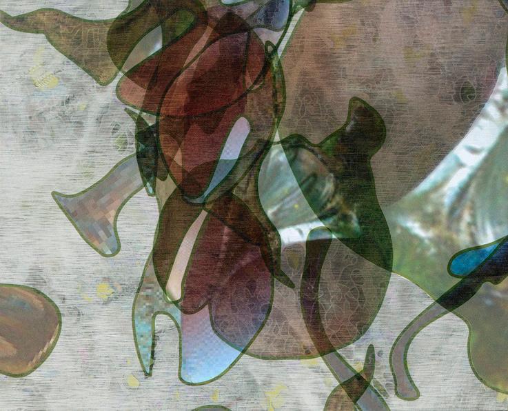 Qualia Contemporary Art is pleased to present Tortoise, a solo exhibition of new work by MexicanAmerican composer, visual artist, and experimental musician Guillermo Galindo. The exhibition continues Galindo’s exploration of borders – metaphysical, geographic, political, philosophical, ecological, and beyond. His broad conceptual focus employs an expansive interpretation of what constitutes a border, whether it be a liminal realm between dreams and consciousness or the differentiation of sound and vision. Tortoise will feature a series of paintings of tortoise shells collected by the artist during his yearlong residency at Roswell, New Mexico, and a selection of double exposure photographic prints with graphic interventions.