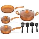 Get cooking with this affordable yet versatile cookware set from Artigee! Perfect for everyday chefs looking for quality without a luxury price tag, this set offers a strong bang for your buck It includes three pots in varying sizes, a non-stick fry pan, and four basic nylon cooking utensils, making it a convenient starter set for those who want functionality and style in the kitchen **Key Features:** • **Non-Stick Copper Ceramic Coating** : Designed for easy cooking and even easier