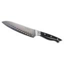 The popularity of the Japanese Santoku knife is rivaling that of the kitchen workhorse - the Chef's Knife The Artigee 7 Inch VG-10 Damascus Steel Santoku Knife with its super sharp blade will make quick and easy work of many kitchen knife tasks including slicing dicing and mincing - considered the 3 specialties of a Santoku knife Forged from top quality Japanese VG-10 Damascus steel, this knife has excellent rust, stain and corrosion resistance, and is built to last a lifetime Han