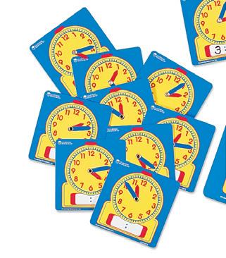 These heavy-duty laminated clocks feature movable plastic hands and a place to write in the digital time. Clocks measure 11cm x 11cm. Ages 5+ | Grades K+ 203759 Set of 10 Reg. $11.75