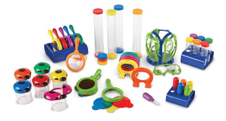 Outfit your classroom with all the essentials for science discoveries! Promote inquiry-based learning and encourage young students as they hypothesize, investigate and form conclusions. Specially designed for little hands, these versatile products support students as they explore a variety of science topics. Includes Jumbo Test Tubes, Jumbo Eye Droppers, Jumbo Magnifiers, Safety Glasses, Mighty Magnets, Sensory Tubes, Big View Bug Jars and 3 Colour Mixing Lenses. Ages 3+ | Grades Pre K+ 206204 47 pieces Reg. $247.95 $210.99