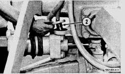2. Remove the four bolts (1) that hold the housing (2) for the bevel pinion to the power control. Remove bolts (3).
