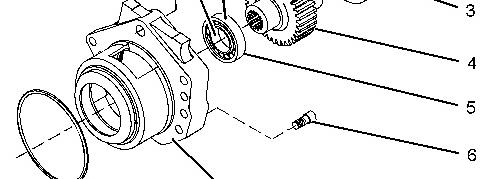 a. Inspect the condition of the teeth and the splinesof gear (4) for wear or damage. Inspect bearings (3) and (5), circlip (2), and the front housing for wear or damage. Replace any componentsthat are worn or damaged.