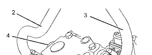 6. Disconnect coolant hose (2) and hose (3) from air compressor (5).