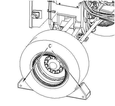1. Block the front wheels with Tooling (C).