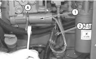 1. Disconnect the harness assembly (2) from fuel shutoff solenoid (1).