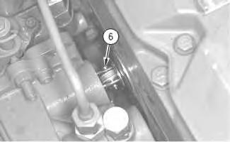 6. Install the gasket for oil supply tube assembly (5) and connect oil supply tube assembly (5) to turbocharger (6).