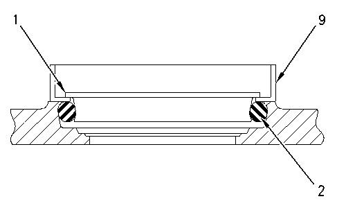 5. Make sure that the lower half of rubber toric ring (2) is still wet. Use Tooling (9) in order to position seal ring (1) and rubber toric ring (2) squarely against seal ring housing (5). Make sure that you use sudden pressure and even pressure when you press a toric ring that has a small diameter. Press rubber toric ring (2) under housing retaining lip (3) that is part of seal ring housing (5). Use the following procedure in order to install a rubber toric ring that has a large diameter: