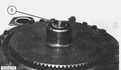 65. Put the three planet gears (59), six washers, six bearing assemblies, and three shafts in position in carrier. Install the bolts, locks, and retainers that hold the planet shafts (58) in place.