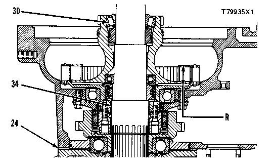 36. The dimension (R) must be 1.416 ± .010 in. (35.966 ± 0.254 mm). Make an adjustment to the thickness of shims (24) to get this dimension. Add shims to decrease the dimension. Remove shims to increase the dimension.