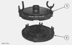 5. Remove the bolts and locks that fasten input flange (5) to No. 1 clutch carrier (6). Remove the input flange from carrier.