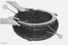 9. Remove the No. 1 clutch piston (11) from the carrier. Remove seal rings (12) from piston and from carrier.