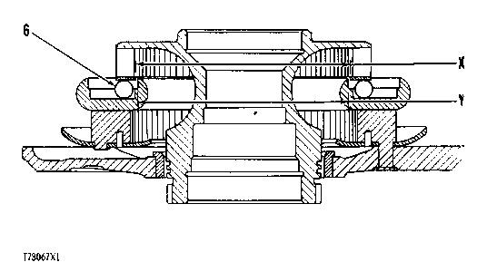 d) Install retainer (80), O-ring seal (81), and shims (79) equal in thickness to the dimension (U) minus .001 to .003 in. (0.025 to 0.076 mm).