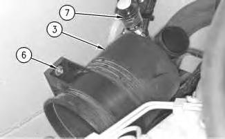 3. Place air cleaner housing (3) into position. Install two bolts (6) in order to secure air cleaner housing (3) to the side of the machine.