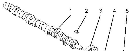 2. Remove spacer (4) and woodruff key (2) from camshaft (1).