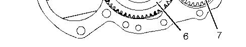 5. Rotate the crankshaft until timing marks (X) are aligned on the following gears: Crankshaft gear (7)