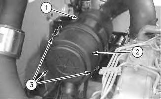 5. Disconnect three clamps(3). Remove air cleaner cover (2) from air cleaner housing (1) .