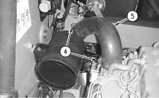 7. Loosen two clamps (4). Disconnect hose (5) .
