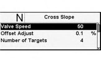 Note: The Valve Speed setting is used to adjust the responsiveness of the Cross Slope System when controlling the blade. A higher value will cause the system to react faster. A lower number will cause the system to react slower.