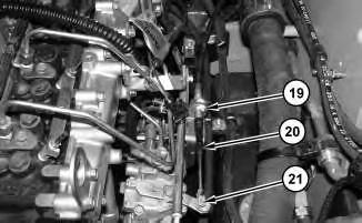 7. Loosen nut (19) . Remove pin assembly (21) and disconnect cable assembly (20) .