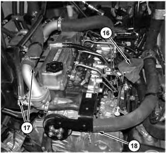 6. Disconnect hoses (17) and (18) . Remove duct (16) .