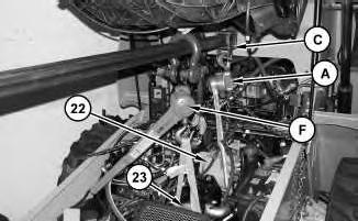 9. Remove bolts (22) and (24) . Disconnect hose (25) .