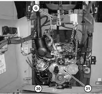 3. Attach Tooling (G) and a suitable lifting device to engine (31). The weight of engine (31) is approximately 340 kg (750 lb).