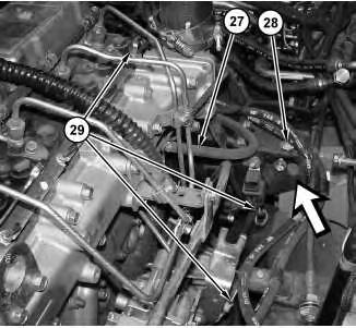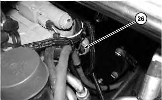 7. Position hoses (26) . Install all clamps (27) that secure hoses (26) to the engine.