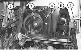 2. Disconnect harness assembly (2). Disconnect hoses (1) and (5). Remove bolts (3) and air cleaner (4) .