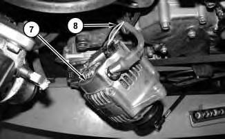 3. Position alternator (7) in order to access harness assembly (8) . Disconnect harness assembly (8) and remove alternator (7) .