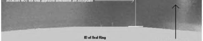 Toric should have the parting line of the seal aligned with the outside diameter of the seal ring. The parting line should align with the OD of the seal ring. Complete a full 360 degrees inspection of the parting line to ensure the OD of the toric aligns with the OD of the seal ring. Refer to Illustration 5.
