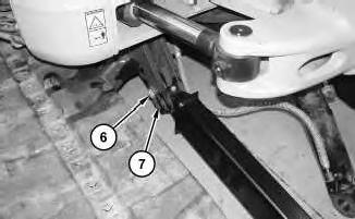 3. Attach a suitable lifting device to blade cylinder (7). The weight of blade cylinder (7) is approximately 34 kg (75 lb). Remove bolt (6) and pin assembly (5). Remove bolt (9) and pin assembly (8). Remove blade cylinder (7).