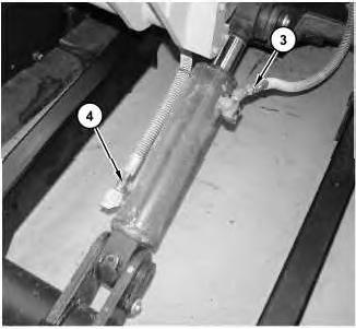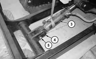 2. Attach a suitable lifting device to blade cylinder (3). The weight of blade cylinder (3) is approximately 18.1436 kg (40 lb). Remove bolt (5) and pin assembly (4). Lower the head end of blade cylinder (3) to the ground. Install pin assembly (4) and bolt (5).