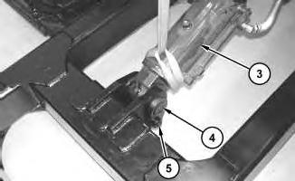 3. Attach a suitable lifting device to blade cylinder (3). The weight of blade cylinder (3) is approximately 36 kg (80 lb). Remove bolt (5) and pin assembly (4). Lower the rod end of blade cylinder (3) to the ground.