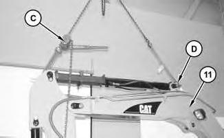 2. Attach a suitable lifting device to boom (9). The weight of boom (9) is approximately 363 kg (800 lb). Install boom (9). Install pin assembly (10) and bolt (11).